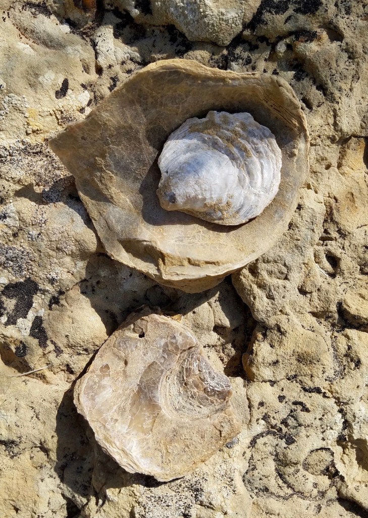 Accessing the Waterpocket District requires driving east on Highway 24 to just outside the park boundary and then heading south. Between flash floods (more on that later), the road was in great condition so when friends came to visit, we ‘looped the fold’. In other words we drove down the east side of the Waterpocket Fold, up the switchbacks on the Burr trail, through the Circle Cliffs on the way to Boulder, UT, and then north over Boulder Mountain and back to Capitol Reef. Along the way we looked for fossilized oyster shells and hiked into Headquarters Canyon. (You can read about our previous drive through this area in our Pandemic Adventure post.)